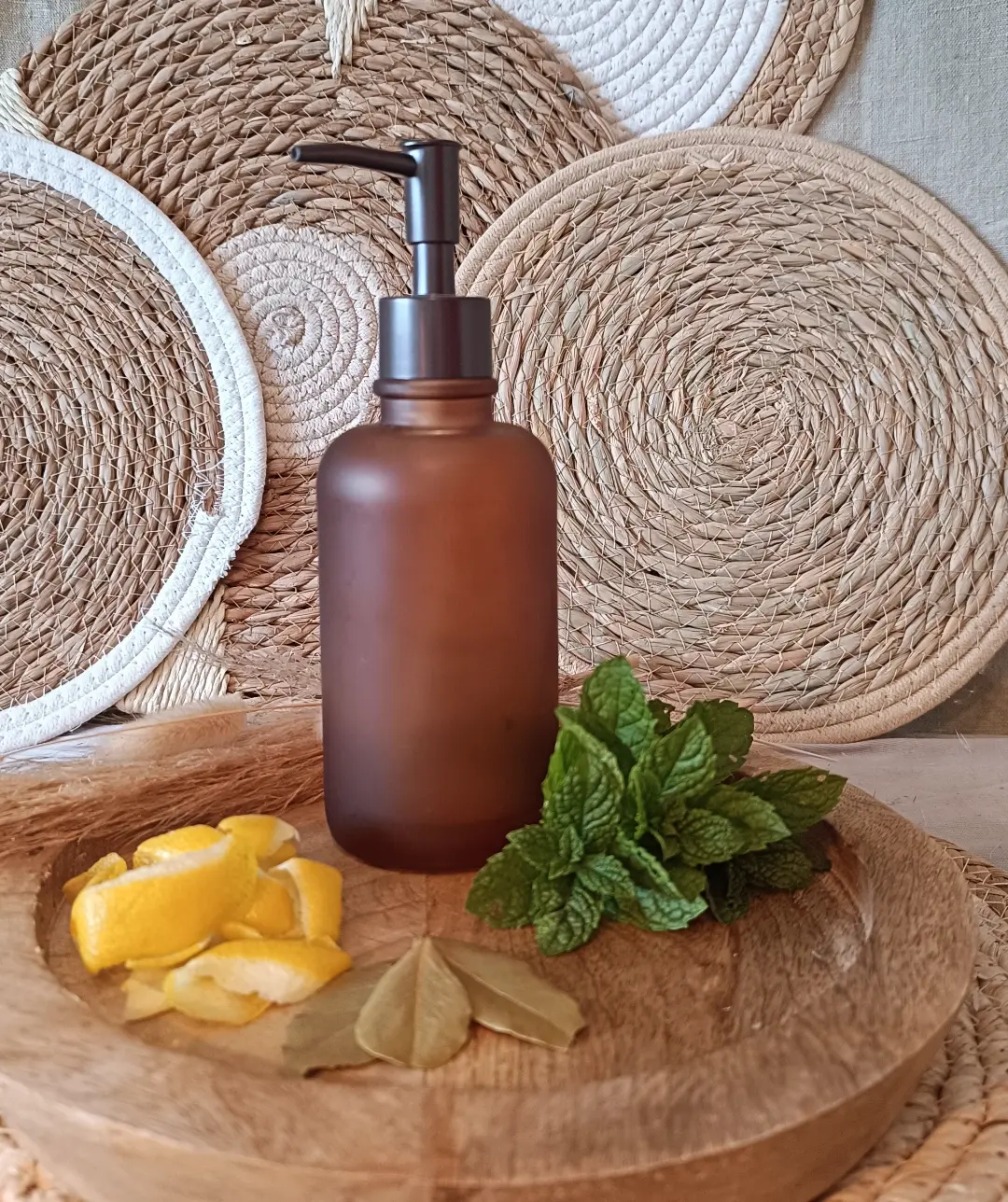 Compositions : huile végétale d'amande douce, HE menthe poivrée, HE laurier noble et HE citron zeste.